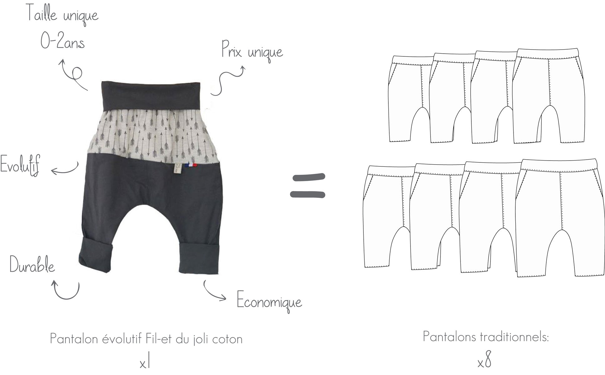 Bon pour le porte monnaie !Pour le pantalon 0-2ans par exemple, plus besoin de racheter un pantalon tous les 3 mois.